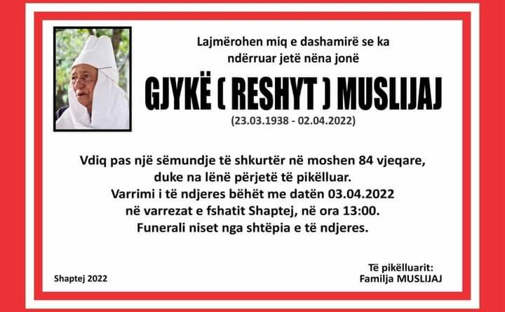 Me pikëllim të thellë mora lajmin për vdekjen e nënës Gjykë Muslijaj nga Shaptej i Deçanit nënë e tre dëshmorëve të atdheut dhe luftëtarëve të UÇK-së