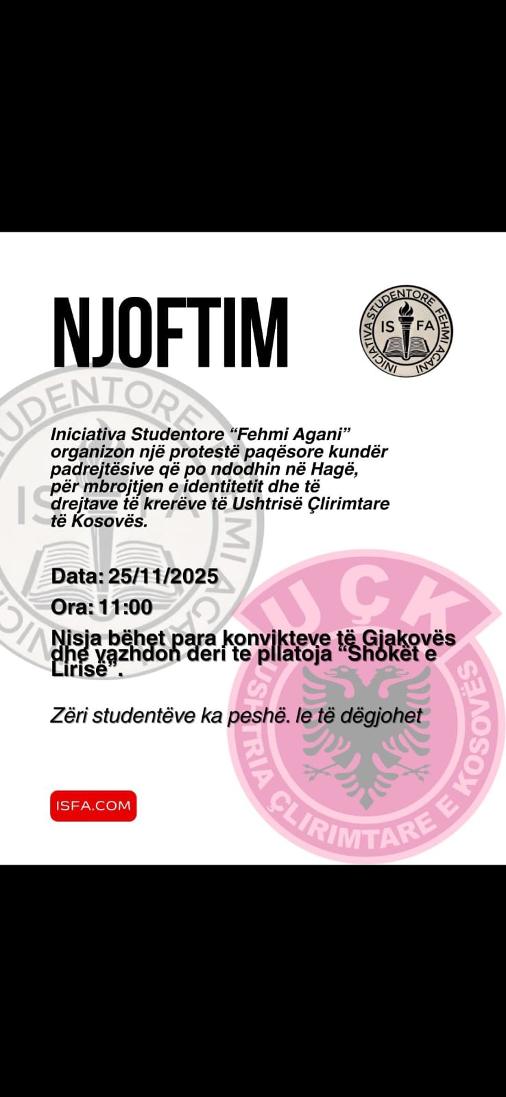 Alma Aliaj Kryetare e Iniciatives studentore Fehmi Agani organizon protestë për Çlirimtarët