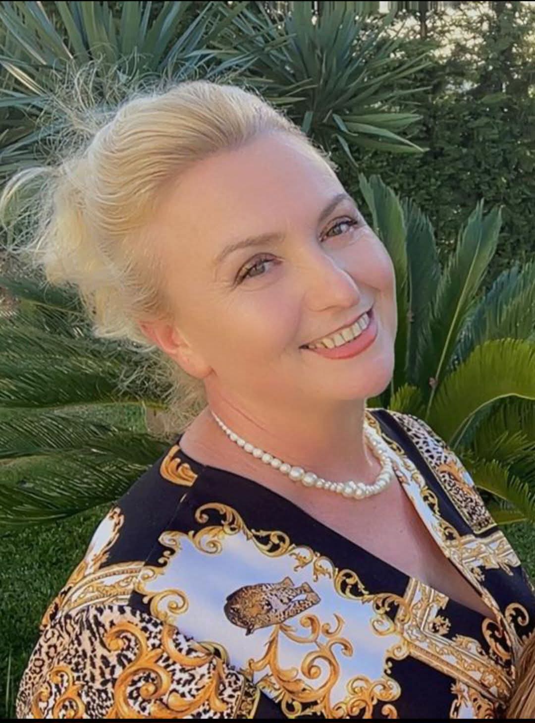 Në një hapësirë ku drita e bardhë shpërndahet si mëngjes pranvere dhe gjelbërimi merr frymë qetë, ajo shfaqet si një pikturë e gjallë, e mbushur me ngjyra të buta dhe ndjenja të thella. E veshur me një fustan ku e zeza e thellë përqafohet me arin e ngrohtë dhe nuanca të bardha që vezullojnë si dritë hëne, ajo bart në vetvete një elegancë që nuk zbehet, por vetëm thellohet me kohën.